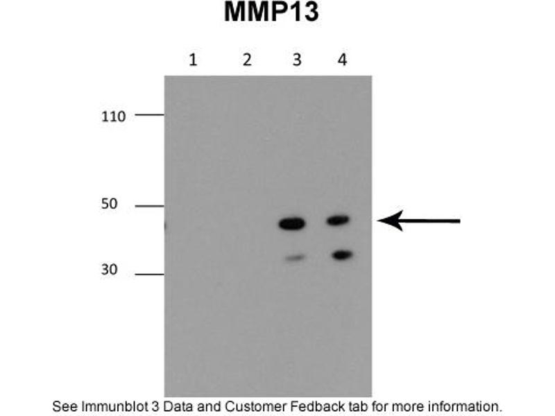 - The immunogen is a synthetic peptide directed towards the middle region of human MMP13
