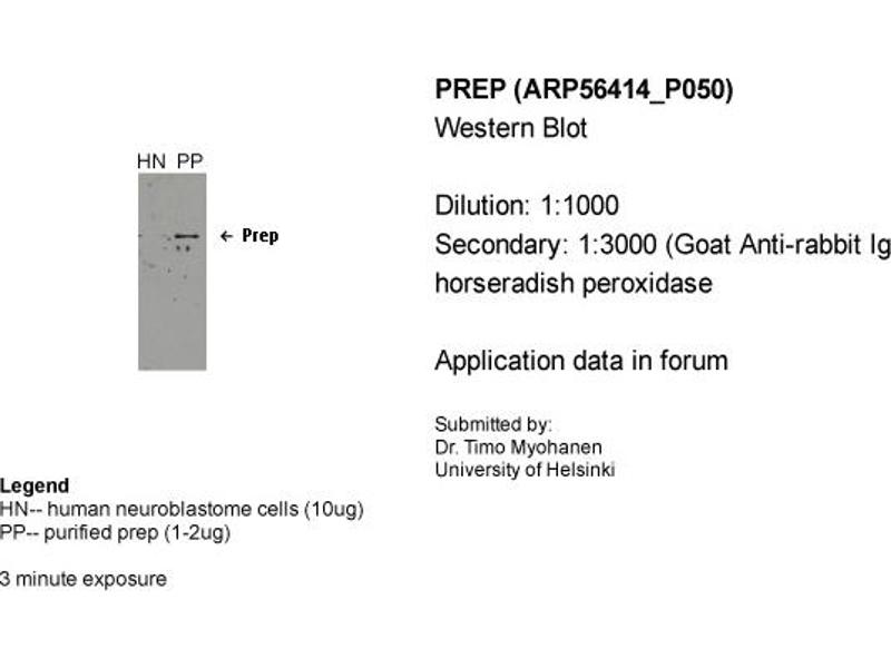 - This is a rabbit polyclonal antibody against PREP. It was validated on Western Blot using a cell lysate as a positive control.