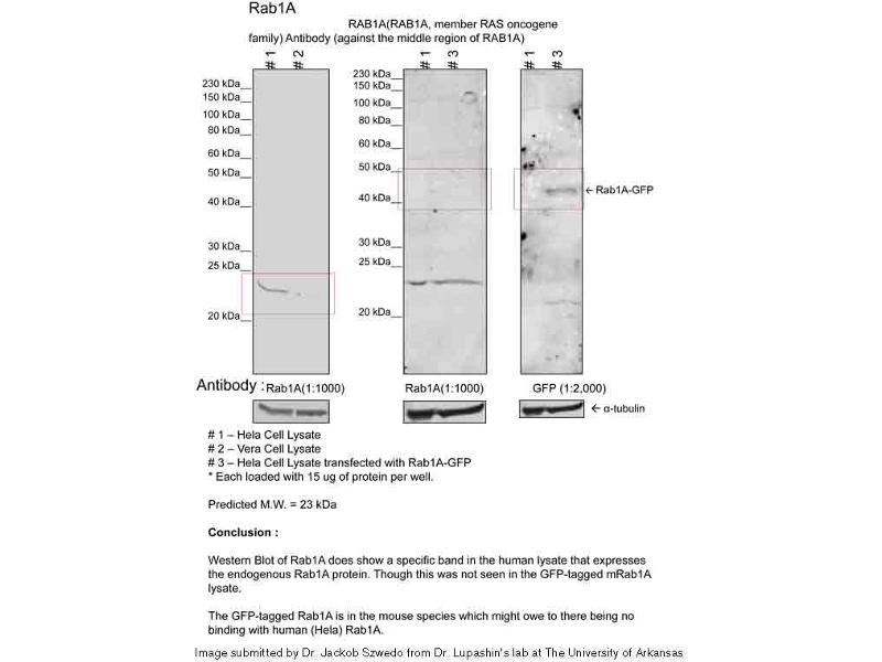 - This is a rabbit polyclonal antibody against RAB1A. It was validated on Western Blot using a cell lysate as a positive control.