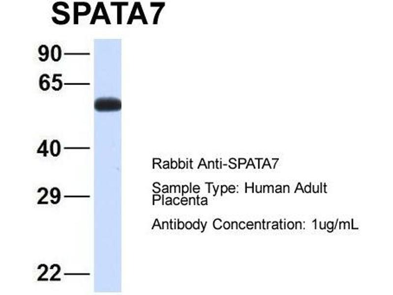 - This is a rabbit polyclonal antibody against SPATA7. It was validated on Western Blot using a cell lysate as a positive control.