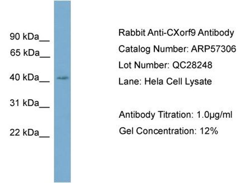 - This is a rabbit polyclonal antibody against CXorf9. It was validated on Western Blot.