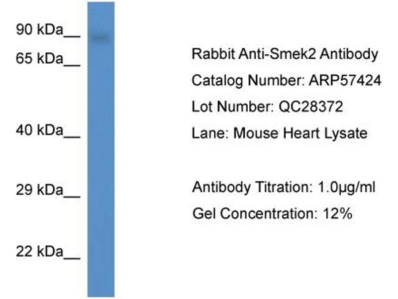 - This is a rabbit polyclonal antibody against Smek2. It was validated on Western Blot.