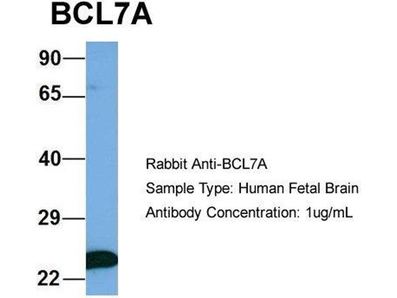 - This is a rabbit polyclonal antibody against BCL7A. It was validated on Western Blot using a cell lysate as a positive control.