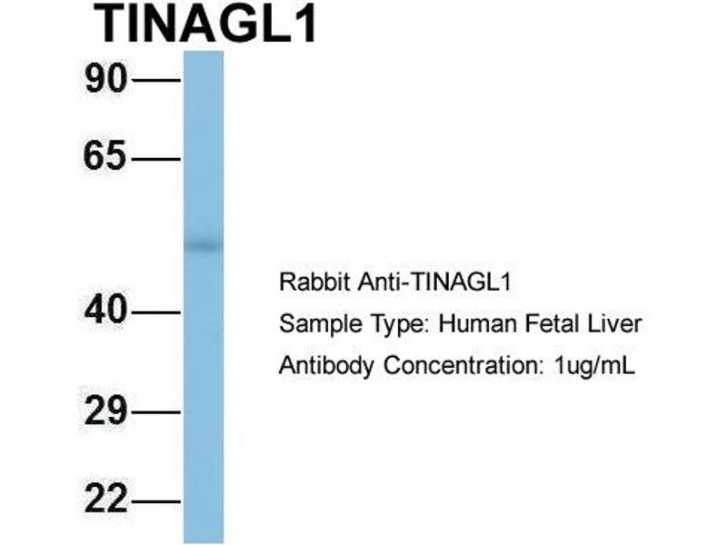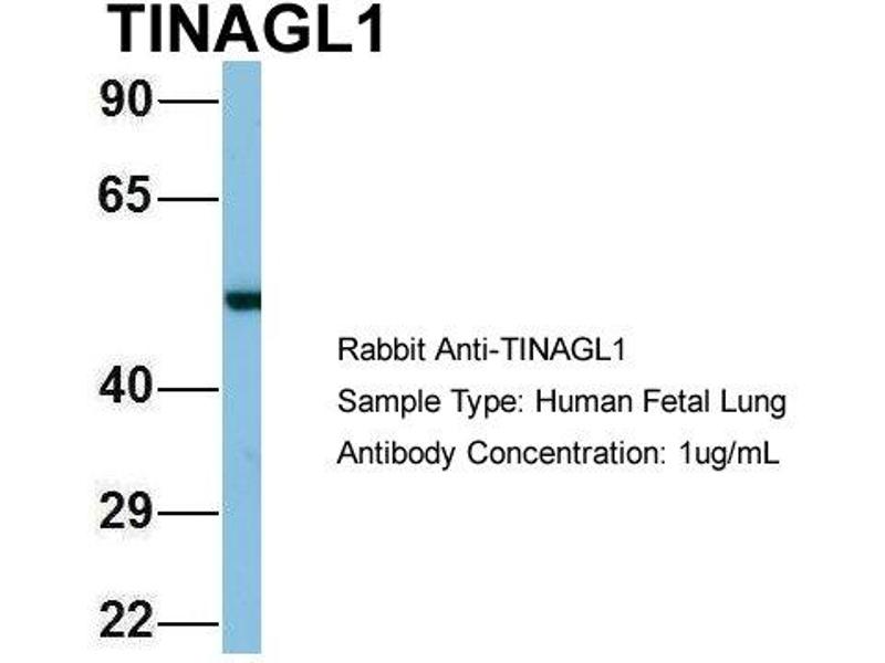 - This is a rabbit polyclonal antibody against TINAGL1. It was validated on Western Blot using a cell lysate as a positive control.