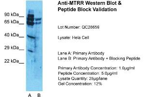 - This is a rabbit polyclonal antibody against MTRR. It was validated on Western Blot using a cell lysate as a positive control.