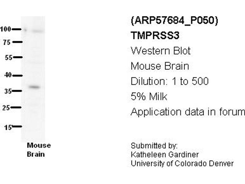 - The immunogen is a synthetic peptide directed towards the N terminal region of human TMPRSS3