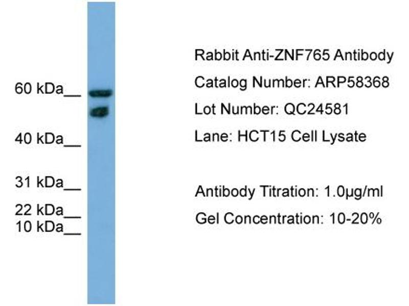 - This is a rabbit polyclonal antibody against ZNF765. It was validated on Western Blot.