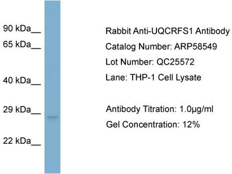 - This is a rabbit polyclonal antibody against UQCRFS1. It was validated on Western Blot using a cell lysate as a positive control.