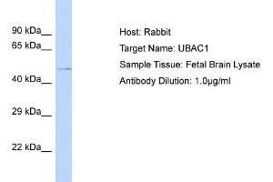 UBAC1 is a non-catalytic subunit of the KPC complex that acts as E3 ubiquitin-protein ligase. It is required for poly-ubiquitination and proteasome-mediated degradation of CDKN1B during G1 phase of the cell cycle. Alias Symbols: GBDR1, RP11-432J22.3, UBADC1 Protein Interaction Partner: TRIM39, TRIM2, DAZAP2, UBC, HTT, UNC119B, VPS25, UTP6, RPS6KA6, TWF2, USP7, TCEA1, APP, AIRE, CSNK2A1, RAD23A, NEDD4L, RNF123, CDKN1B, PSMD6, PSMD7, PSMD4, RNF11, CPSF6, LAPTM5, IQGAP2, MED7, MYH2, EIF4EBP1, Protein Size: 405