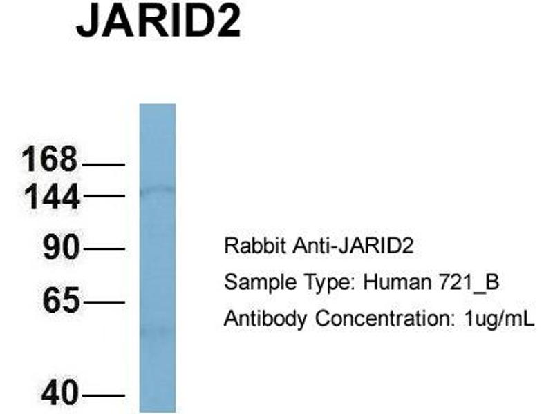 - This is a rabbit polyclonal antibody against JARID2. It was validated on Western Blot using a cell lysate as a positive control.