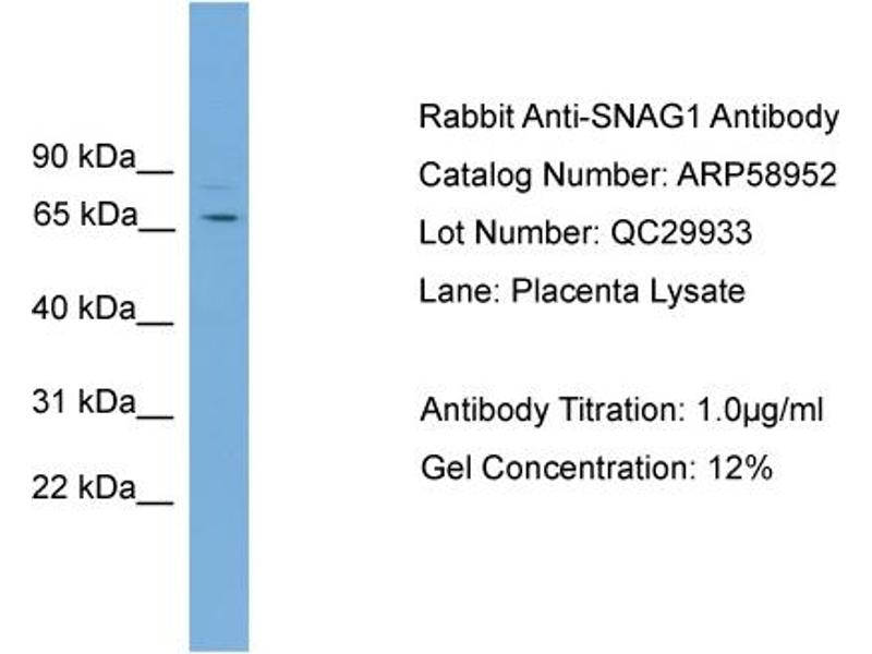 - This is a rabbit polyclonal antibody against SNAG1. It was validated on Western Blot.