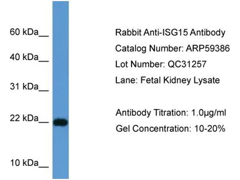 - This is a rabbit polyclonal antibody against ISG15. It was validated on Western Blot.