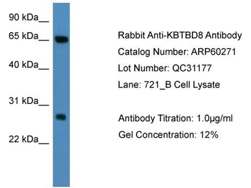 - This is a rabbit polyclonal antibody against KBTBD8. It was validated on Western Blot.