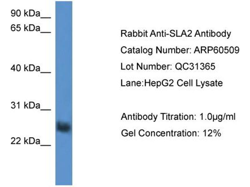 - This is a rabbit polyclonal antibody against SLA2. It was validated on Western Blot.