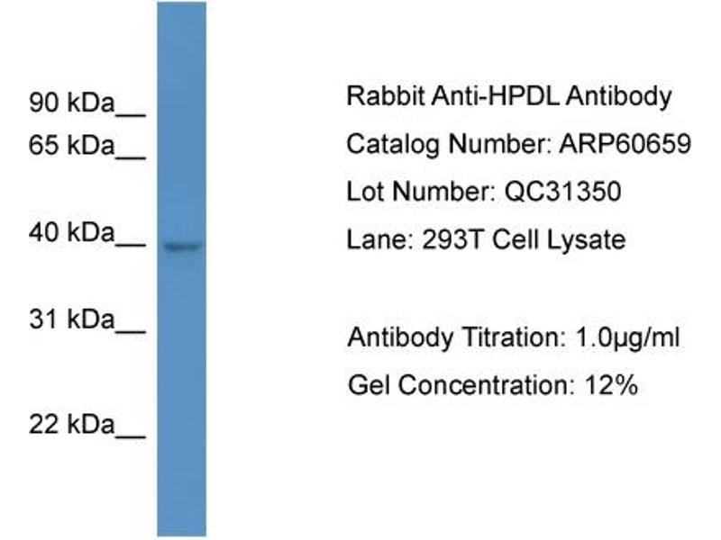 - This is a rabbit polyclonal antibody against HPDL. It was validated on Western Blot.