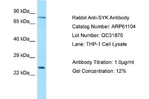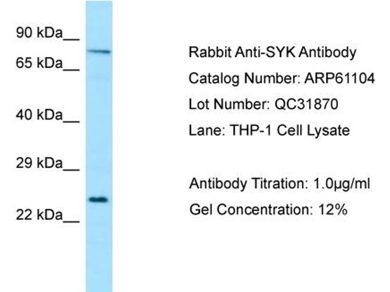 - This is a rabbit polyclonal antibody against SYK. It was validated on Western Blot.