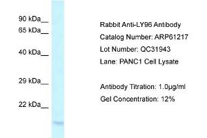 - This is a rabbit polyclonal antibody against LY96. It was validated on Western Blot.