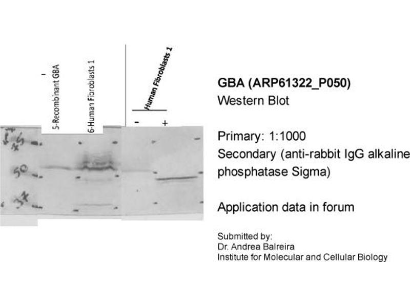 - This is a rabbit polyclonal antibody against GBA. It was validated on Western Blot.