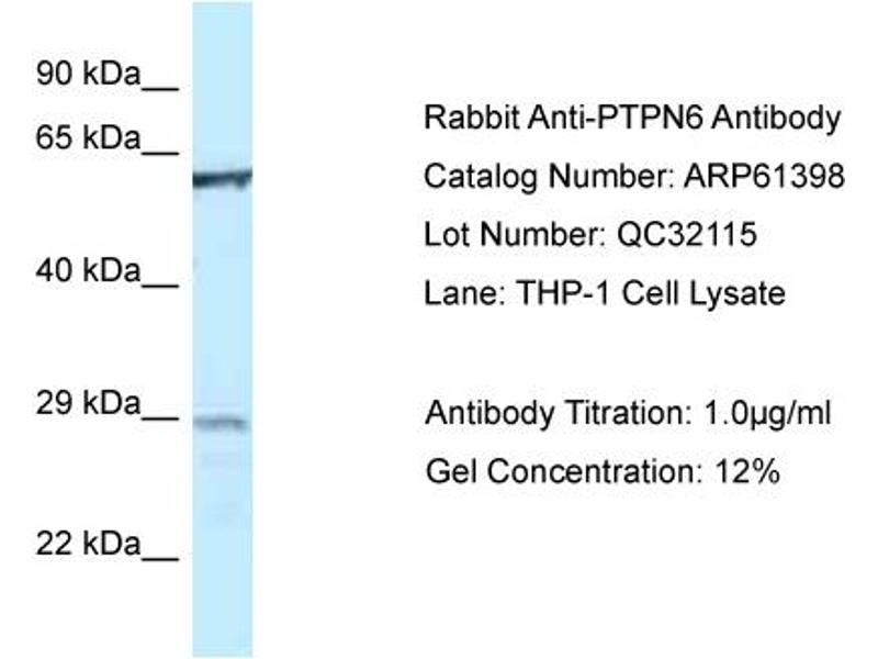 This is a rabbit polyclonal antibody against PTPN6. It was validated on Western Blot.