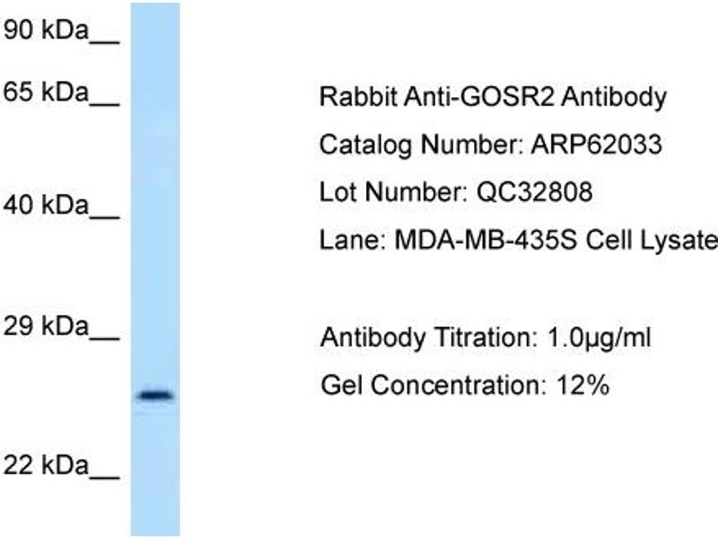 - This is a rabbit polyclonal antibody against GOSR2. It was validated on Western Blot.