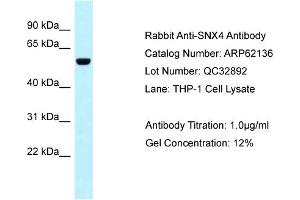 - This is a rabbit polyclonal antibody against SNX4. It was validated on Western Blot.