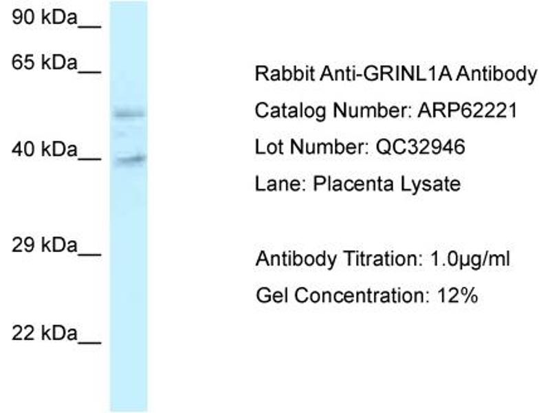 - This is a rabbit polyclonal antibody against GRINL1A. It was validated on Western Blot.