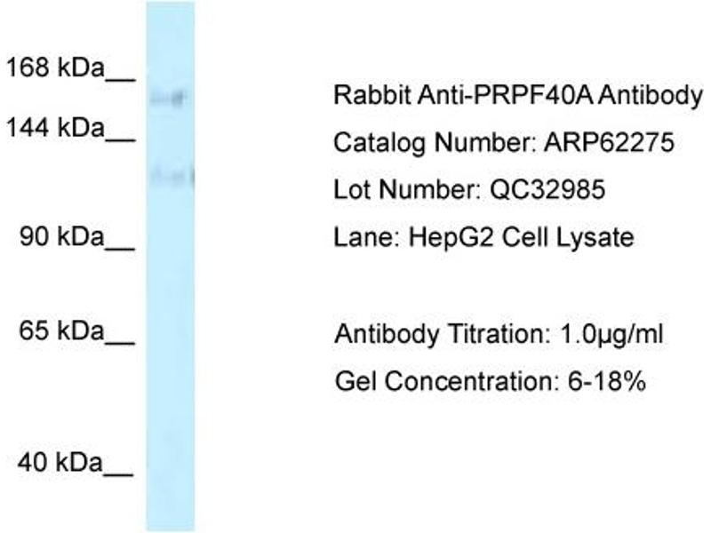 - This is a rabbit polyclonal antibody against PRPF40A. It was validated on Western Blot.