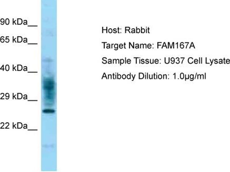 This is a rabbit polyclonal antibody against FAM167A. It was validated on Western Blot.