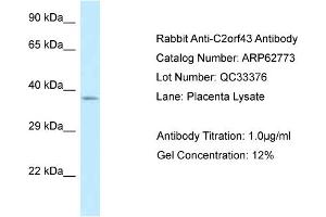 - This is a rabbit polyclonal antibody against C2orf43. It was validated on Western Blot.