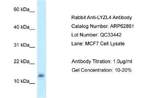 - This is a rabbit polyclonal antibody against LYZL4. It was validated on Western Blot.