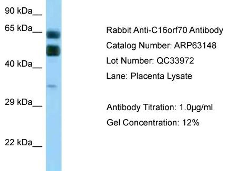 - This is a rabbit polyclonal antibody against C16orf70. It was validated on Western Blot.