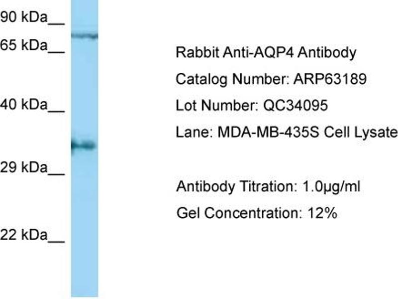 - This is a rabbit polyclonal antibody against AQP4. It was validated on Western Blot.