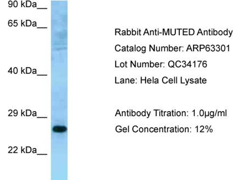 - This is a rabbit polyclonal antibody against MUTED. It was validated on Western Blot.