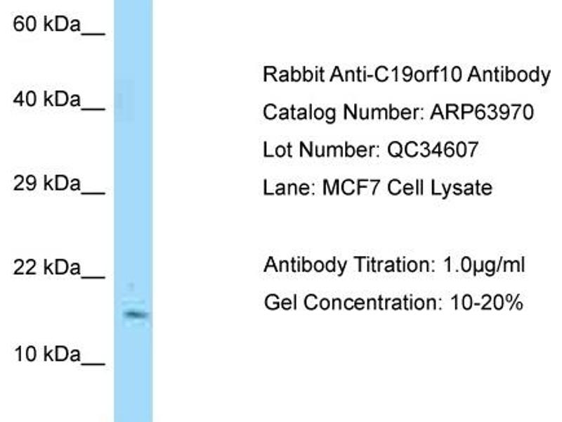 - This is a rabbit polyclonal antibody against C19orf10. It was validated on Western Blot.
