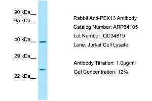 - This is a rabbit polyclonal antibody against PEX13. It was validated on Western Blot.