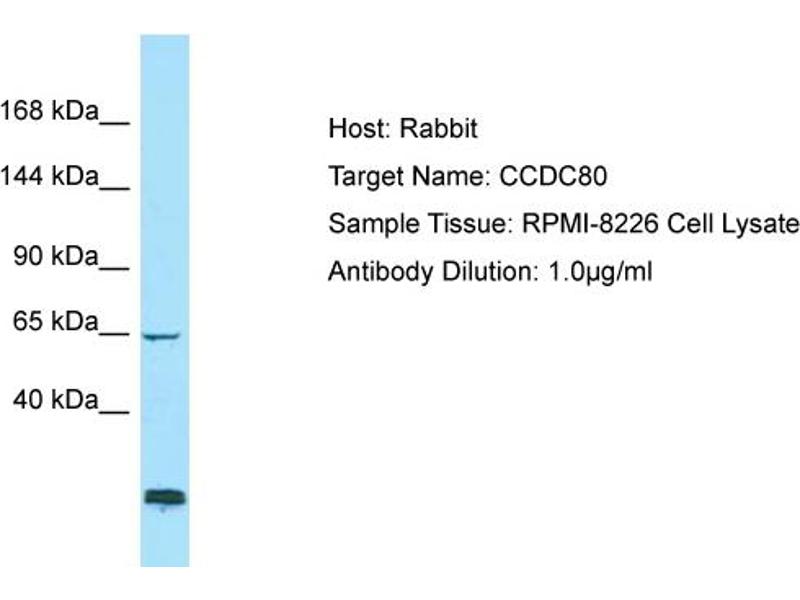 This is a rabbit polyclonal antibody against CCDC80. It was validated on Western Blot.