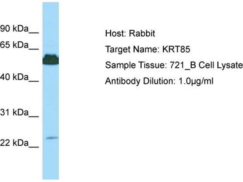 - This is a rabbit polyclonal antibody against KRT85. It was validated on Western Blot.