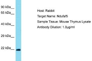Ndufaf5 is involved in the assembly of mitochondrial NADH:ubiquinone oxidoreductase complex (complex I, MT-ND1) at early stages. It may have methyltransferase activity. Protein Size: 156