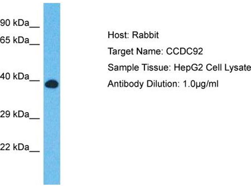 This is a rabbit polyclonal antibody against CCDC92. It was validated on Western Blot.