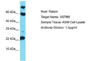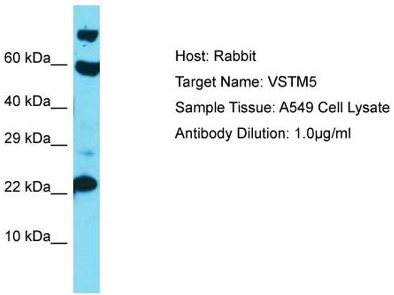 This is a rabbit polyclonal antibody against VSTM5. It was validated on Western Blot.