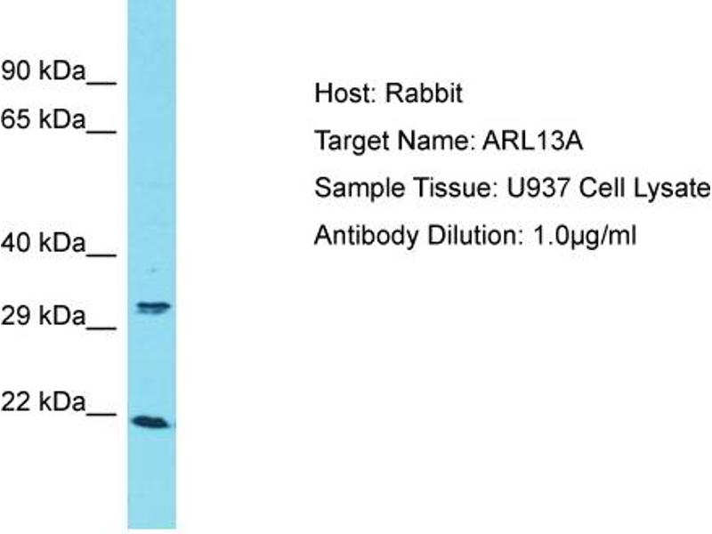 This is a rabbit polyclonal antibody against ARL13A. It was validated on Western Blot.