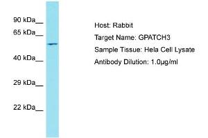 This is a rabbit polyclonal antibody against GPATCH3. It was validated on Western Blot.