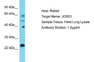 JOSD1 has low protease activity towards poly-ubiquitin chains (in vitro) and may act as a deubiquitinating enzyme. Alias Symbols: dJ508I15.2 Protein Interaction Partner: NOTCH2NL, KRTAP10-3, KRTAP10-8, KRTAP10-4, KRT40, KRTAP9-2, MID2, UBC, TRAF1, TRIM27, KRT31, KRTAP5-9, TRIM23, STUB1, TRIM63, PJA1, USP28, TRIM54, USP21, USP15, LNX1, ELAVL1, TIMM8A, CALM1, Protein Size: 202