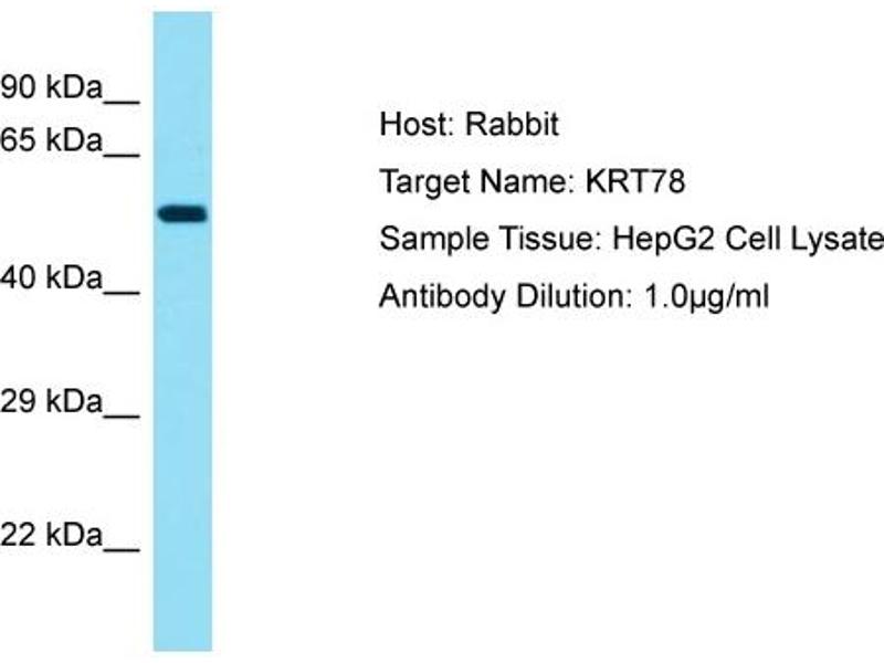 Der Kaninchen Polyklonal anti-Keratin 78 Antikörper (ABIN2791631) detektiert spezifisch Keratin 78 in WB.