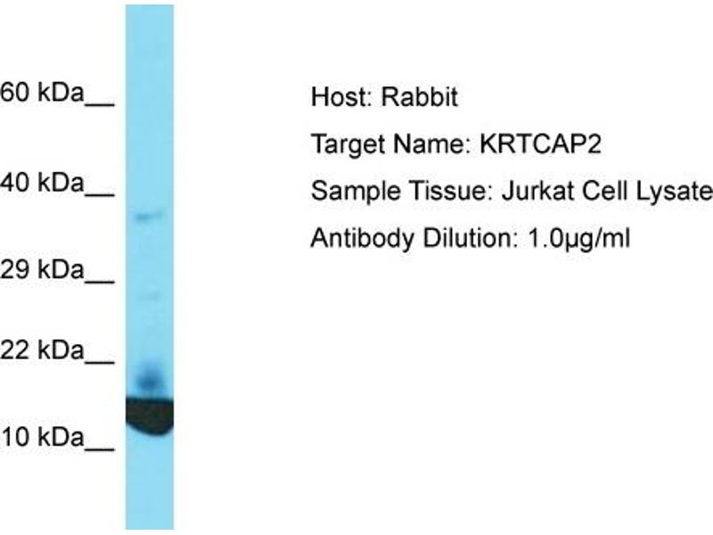 Der Kaninchen Polyklonal anti-KRTCAP2 Antikörper (ABIN2791635) detektiert spezifisch KRTCAP2 in WB.
