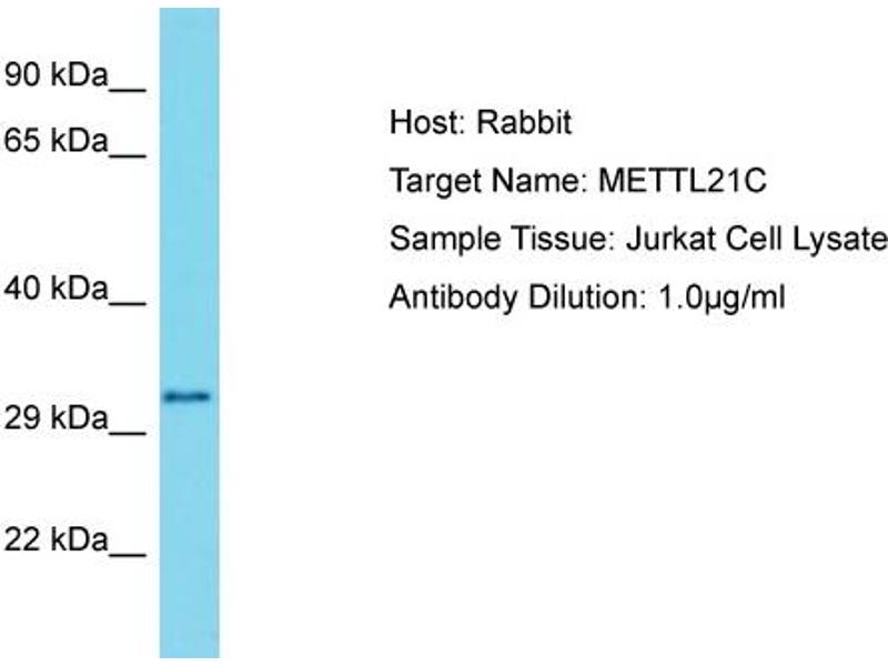 This is a rabbit polyclonal antibody against METTL21C. It was validated on Western Blot.