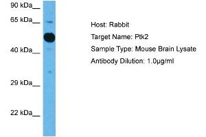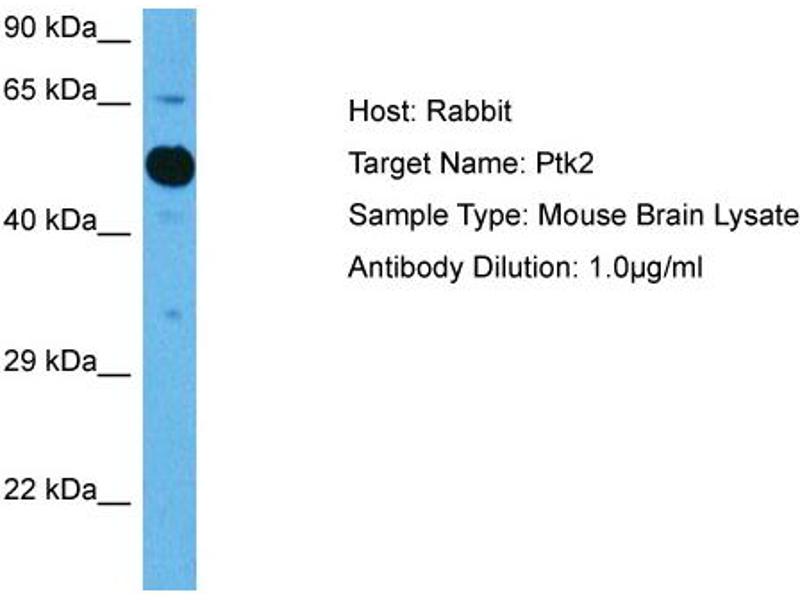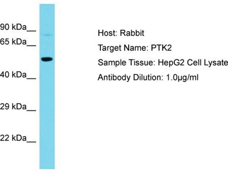 This gene encodes a cytoplasmic protein tyrosine kinase which is found concentrated in the focal adhesions that form between cells growing in the presence of extracellular matrix constituents. The encoded protein is a member of the FAK subfamily of protein tyrosine kinases but lacks significant sequence similarity to kinases from other subfamilies. Activation of this gene may be an important early step in cell growth and intracellular signal transduction pathways triggered in response to certain neural peptides or to cell interactions with the extracellular matrix. Several transcript variants encoding different isoforms have been found for this gene, but the full-length natures of only three of them have been determined. Protein Interaction Partner: DEF6, SOCS3, YES1, IQGAP1, UBE2H, UBC, TRIM72, SRPK1, PXN, PTRH2, SAE1, HSP90AA1, APP, RBSN, BCAR1, KCNJ3, PTAFR, STAT1, CBL, STAP2, STUB1, PTPN11, PPP1CB, PPP1CA, SRC, CTTN, ASAP1, SH3KBP1, PDCD6IP, ITGB5, ELAVL1, DAG1, GRB2, FBP1, F13A1, EEF1G, LPXN, TG Protein Size: 431