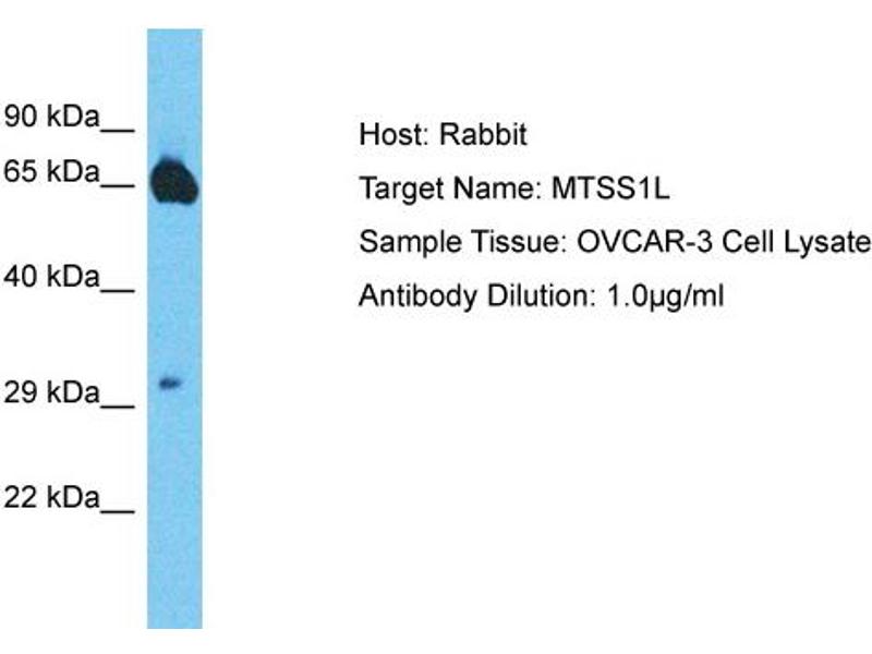 This is a rabbit polyclonal antibody against MTSS1L. It was validated on Western Blot.
