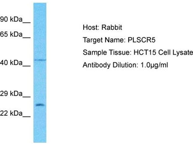 This is a rabbit polyclonal antibody against PLSCR5. It was validated on Western Blot.