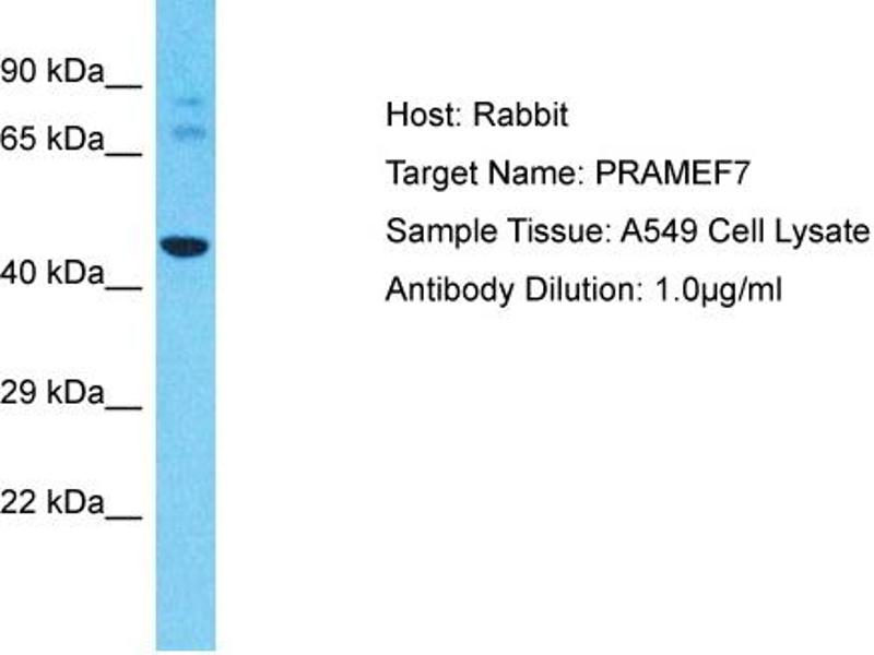This is a rabbit polyclonal antibody against PRAMEF7. It was validated on Western Blot.